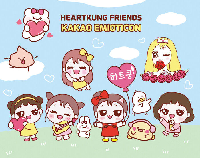 긍정 에너지를 가득 전해주는 고양이 요정 하트쿵은 하트모양의 눈동자를 반짝이며 사람들의 장점을 찾아내고 귀를 쫑긋 세우며 친구들의 고민을 들어준다. 예쁘고 상냥한 말로 사람들을 기쁘게 해주는 데서 행복을 얻는 하트쿵은 모든 사람과 친구가 되고 싶다. 귀엽고 사랑스럽다가도 진지하고 엉뚱발랄한 하트쿵은 카카오톡 이모티콘 4탄 출시를 앞두고 있으며 네이버쇼핑 아트윈도에서 다양한 굿즈로 팬들을 만나고 있다. 작가는 앞으로 봉제인형과 아트토이 피규어 , 팬시용품 등을 선보일 예정이며 출판물과 애니메이션 제작도 계획 중이다.