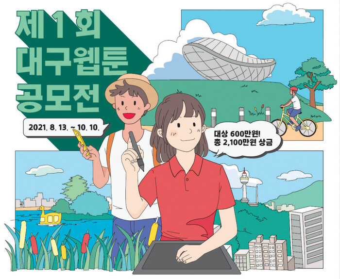 대구디지털산업진흥원이 운영 중인 대구웹툰캠퍼스가 한국만화영상진흥원 , 대구시와 함께 오는 10월 10일까지 제1회 대구 웹툰 공모전을 연다. 대한민국 국민 누구나 참여 가능하며 팀의 경우 최대 2인까지 구성할 수 있다. 총상금 2,100만 원 규모로 열리는 이번 공모전은 총 10명에게 상장과 상금을 수여하며 수상작에 대해서는 유관 사업 참여 연계 및 작가 양성 , 전문가 컨설팅 등의 지원이 이뤄진다.