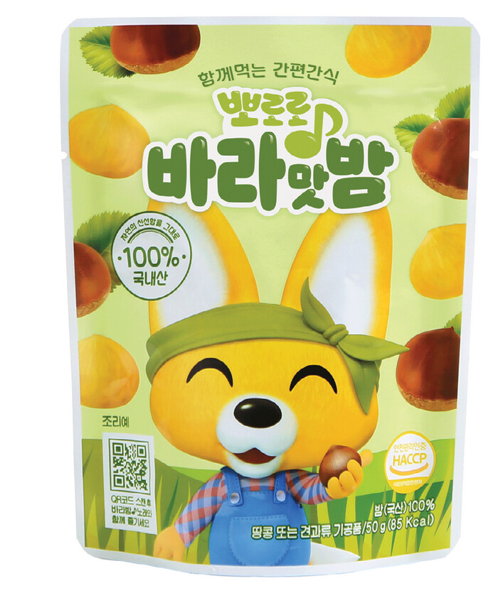 간편하게 휴대할 수 있는 크기여서 나들이 간식으로도 적합하며 패키지의 QR코드를 스캔하면 뽀로로 인기 주제곡 바라밤이 나와 재미를 더한다.