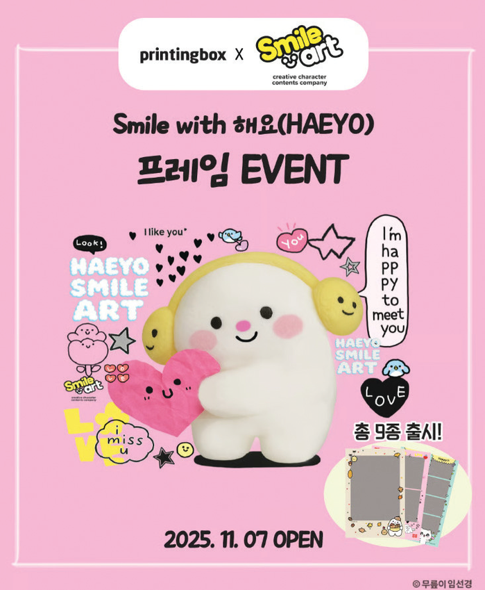 포토굿즈 플랫폼 프린팅박스가 스마일아트의 캐릭터 해요를 활용한 포토 프레임 9종을 출시했다.