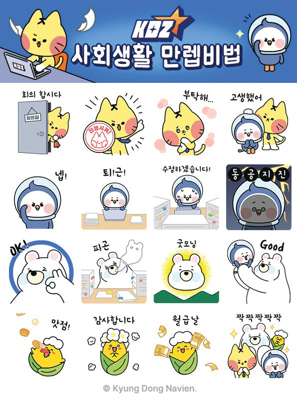 경동나비엔이 자사 캐릭터 키디즈(KDZ)로 이모티콘을 만들어 무료로 배포했다. 키디즈는 각종 유해 물질인 악당 Z빌런을 소탕해 쾌적한 생활환경을 선사하는 히어로로 지난해부터 나비, 웅디, 에벗, 댄싱콘 네 명과 함께 키디즈 TFT 비밀 요원으로 활동 중이다. 이모티콘은 키디즈 요원들이 직장 생활에서 겪는 다양한 감정을 재치 있게 담았다.
