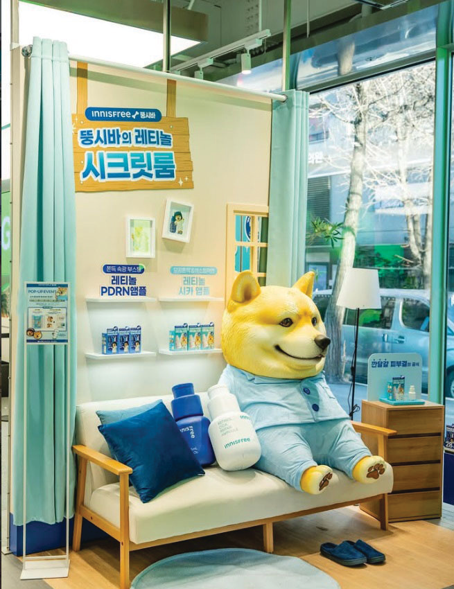 이니스프리는 기획세트 출시를 기념해 서울시 마포구 올리브영 홍대타운에서 12월 31일부터 1월 31일까지 ‘뚱시바의 레티놀 시크릿룸’ 팝업을 운영했다.