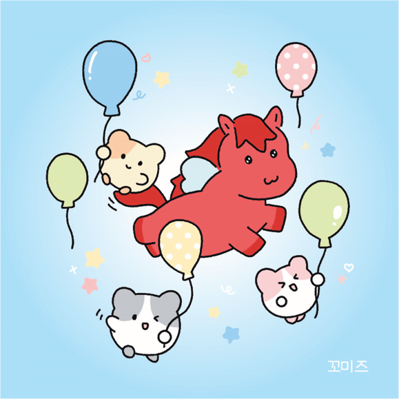 꼬미즈는 누룽찌, 은갈찌, 소세찌 세 마리 햄스터로 구성된 캐릭터 브랜드다. 동물 이름을 음식으로 지으면 오래 산다는 이야기가 있다. 그래서 햄스터들의 색과 닮은 누룽지, 은갈치, 소시지에서 이름을 따왔다. 작고 귀여운 존재들이 오래오래 함께하길 바라는 마음을 담았다.