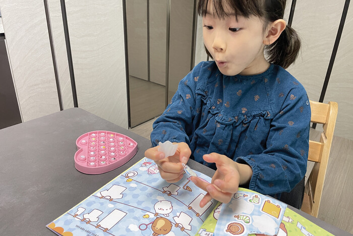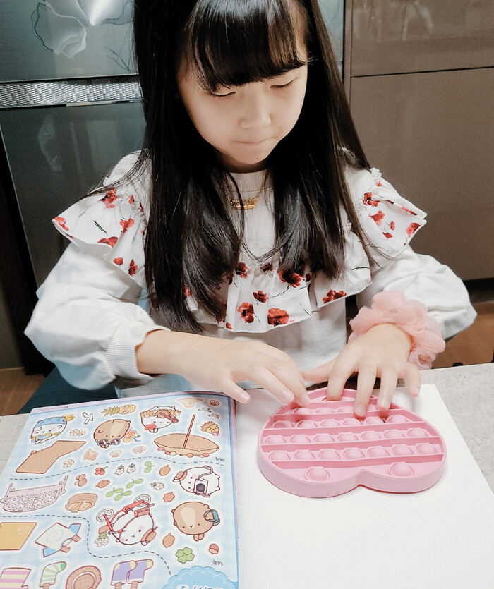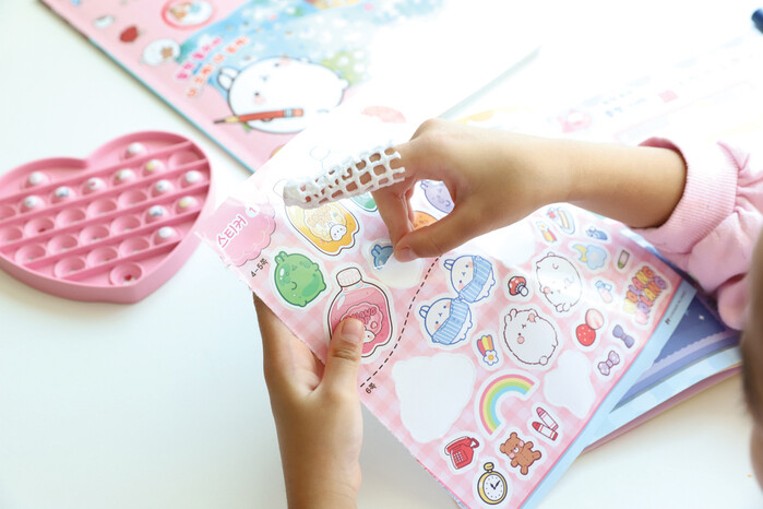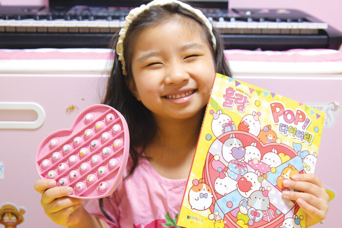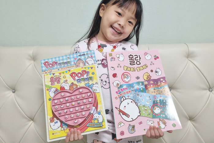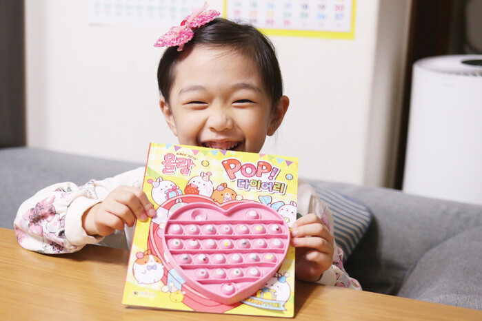 아기자기한 캐릭터 아이템을 좋아하는 아이가 몰랑이 그림이 그려진 팝잇에 시선을 뺏겼어요. 다양한 놀이가 가능해 친구들과 함께 놀 수 있어요.
