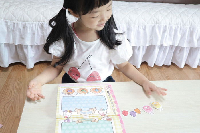 몰랑이 스티커나 장난감을 교환하는 놀이판 , 게임기 꾸미기 , 색칠하기 등으로 알차게 구성돼 있어 아이가 좋아합니다.