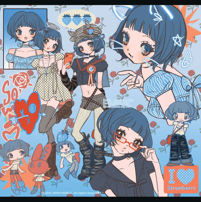 도미월드의 여성들은 활기가 넘친다. 선명하고 화려해 더욱 생생하고 강렬하게 다가온다. 옛날 순정만화에서 튀어나온 듯한 분위기를 풍기면서도 촌스러움은 찾아볼 수 없는 감각적인 일러스트는 하이틴 패션잡지의 한 페이지를 보는 듯하다. 이들에게 열광하는 건 그 시절의 감성 때문일까. 아니면 러블리 하이틴이 뿜어내는 생기발랄함 때문일까.
