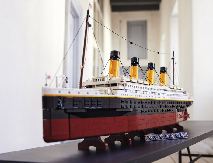 110년 전 세계에서 가장 큰 여객선 타이타닉호를 1:200 비율로 구현한 레고 타이타닉 세트는 내부를 살필 수 있도록 3개 구간으로 나눠 6층 높이에 이르는 일등석 전용 대형 계단과 디데크에 위치한 자코비안 스타일 식당 등 타이타닉호의 주요 요소를 세밀하게 재현했다.