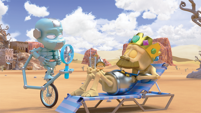 황금성을 차지하기 위한 스컬제국과 스컬파라다이스의 대결을 그린 넌버벌 슬랩스틱 코미디 <스컬킹>이 KBS 2TV에서 방영 중이다. 치고 박는 싸움보다 일상의 관계에서 일어날 법한 상황에 집중한 공감 스토리가 웃음을 배가한다. 세계적인 인기 아이템 해골을 전면에 내세운 애니작은 차별화된 기획과 소재로 주목받았던 <좀비덤>의 영광을 재현하겠다는 각오다.