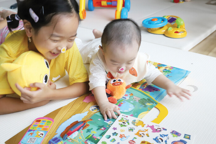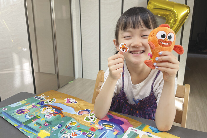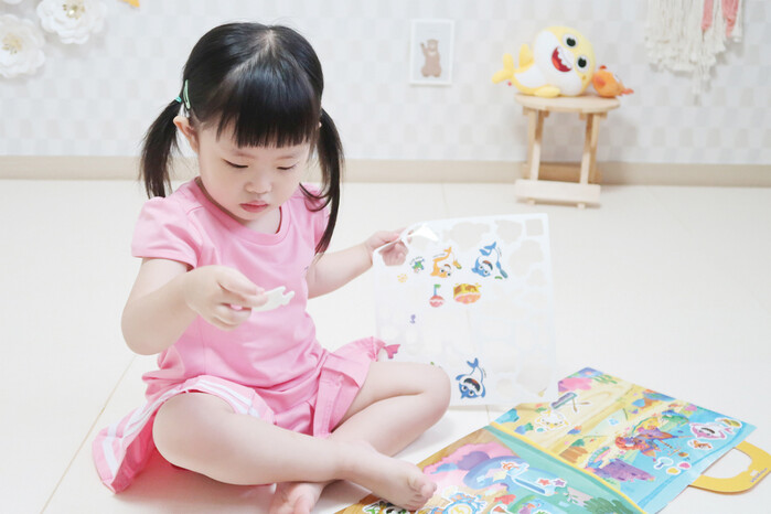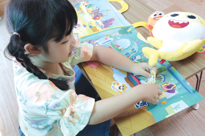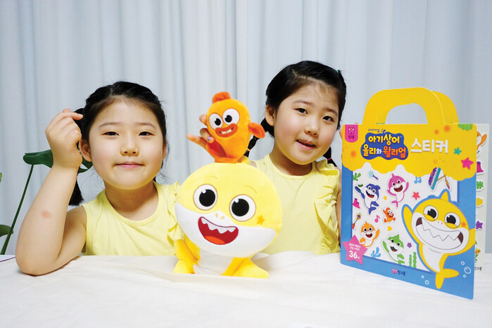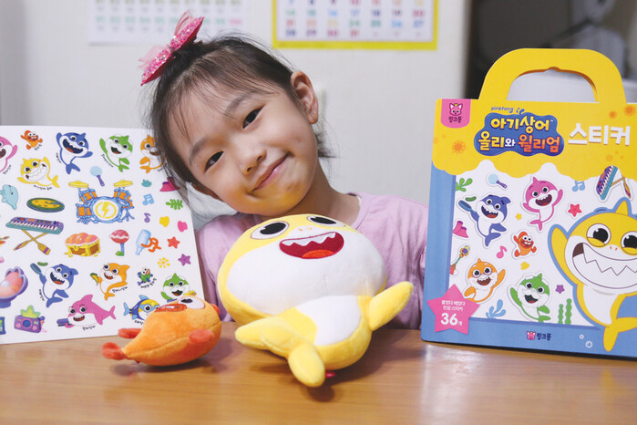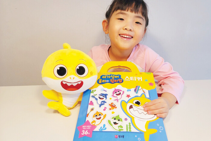 아기상어 올리와 윌리엄 인형은 귀엽고 포근한 느낌을 주고 그립감도 좋아요. 또 애니메이션에 나오는 캐릭터들이 가득 들어 있는 스티커북은 아이들의 시간 순삭 아이템이에요.