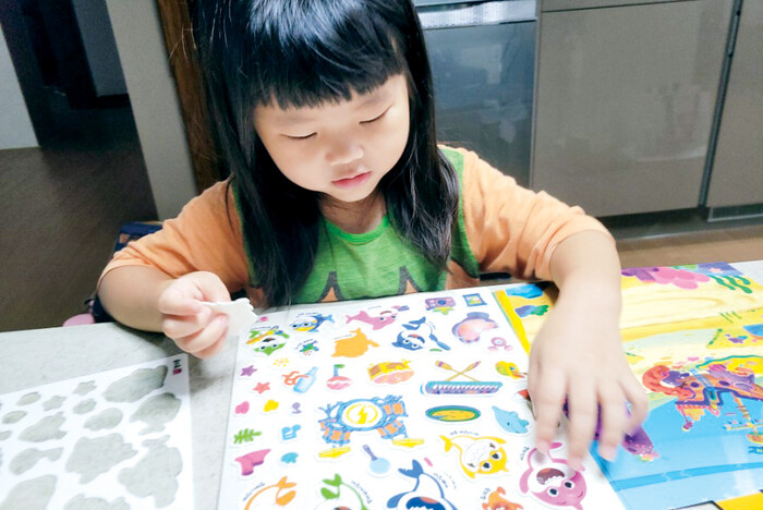 스티커 종류가 다양하고 여러 번 붙였다 뗄 수 있어서 아이가 시간가는 줄 모르고 갖고 놉니다. 손잡이가 달린 가방 형태여서 외출할 때 들고 다니기 편해요.