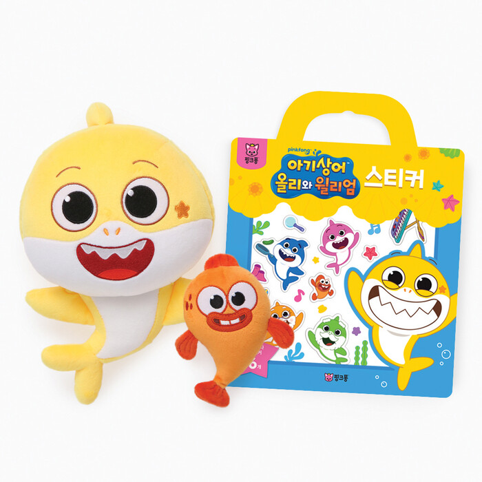 보들보들한 촉감의 아기상어 올리와 윌리엄 인형은 아이들의 애착인형으로 적당하고 말랑말랑 스티커북은 밖에 나갈 때도 들고 다닐 수 있어요.