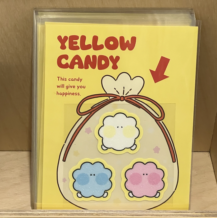 옐로우캔디는 단순하고 즐겁게 살아가는 노란색 아이다. 친구 별사탕(별·샤샤·탕)과 함께 장난치며 노는 일상을 그리고 있다. 보는 이에게 소소한 웃음과 행복을 전하는 장난꾸러기 같은 캐릭터다.
