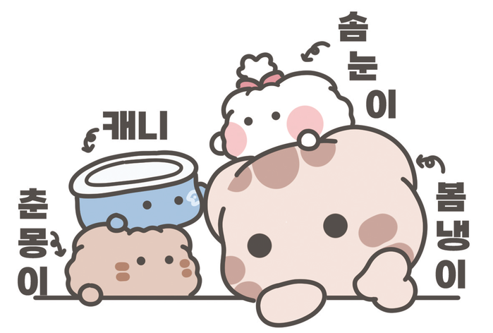 다정한 아기 고양이 봄냉이, 봄냉이의 털 뭉치에서 태어난 갈색 털 뭉치 춘몽이, 말괄량이 같은 하얀 털 뭉치 솜눈이, 속에 어떤 내용물이 있는지에 따라 성격이 변하는 미스터리한 참치캔 캐니가 메인 캐릭터다. 귀여움이 가득한 이들의 유쾌하고 복잡 미묘한 일상을 지켜봐 달라.