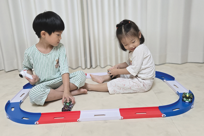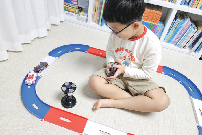 실내 활동이 많아지는 요즘에 잘 어울리는 완구예요. 친구, 형제가 함께 레이싱을 즐길 수 있는 제품이라 더 좋아요.
