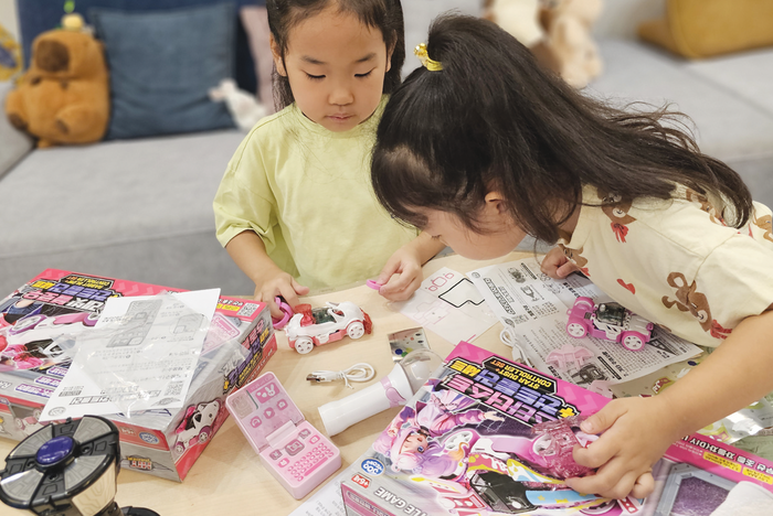 자동차를 좋아하는 여섯 살짜리 아들 취향을 저격하는 완구라고만 생각했는데 네 살짜리 딸아이도 함께 빠져서 매일같이 경주를 벌여요.