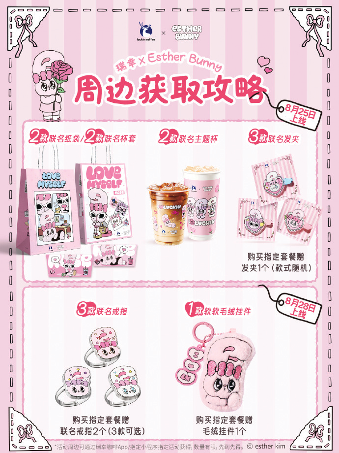 루이싱커피는 8월 18일부터 31일까지 에스더버니와 함께 ‘나 자신을 사랑하자’란 캠페인을 전개하면서 특별 메뉴와 10여 종의 한정판 굿즈를 선보였다.