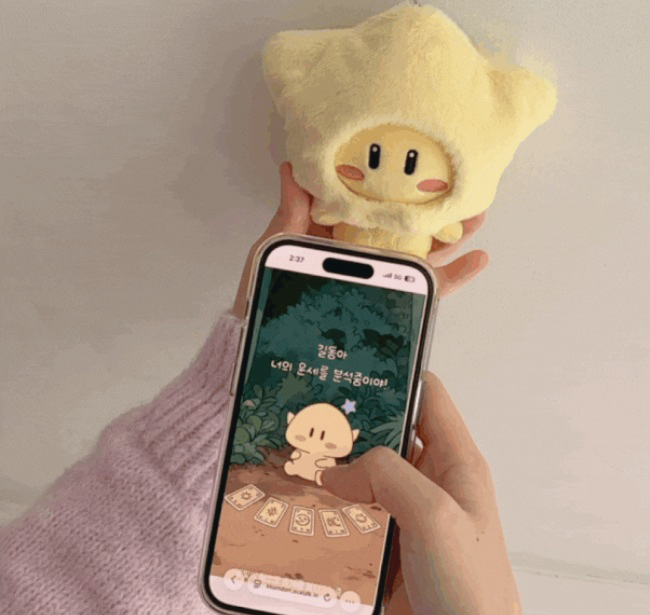노란색 꿈돌이와 분홍색 꿈순이 인형의 배 부위에 스마트폰을 갖다 대면 오늘의 별자리 운세가 나온다. 또 운세 결과에 따라 귀여운 아이템도 제공해 모으는 재미를 더했다.