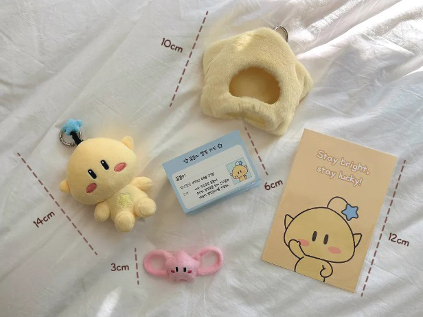 인형에는 별 모양의 모자나 가방을 씌울 수 있어 다양한 연출이 가능하다.