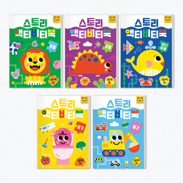5권이 세트인데 동물, 공룡, 탈것, 응가, 바다 동물 등 누리과정에서 엄선한 주제로 구성돼 유익해요. 스티커, 색칠, 선 긋기, 오리기 등 놀이 활동도 다양해요.