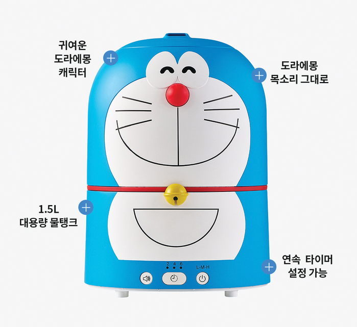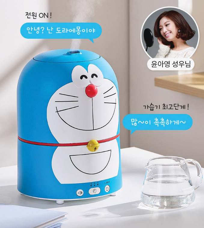 특히 도라에몽의 목소리를 연기한 성우 윤아영이 직접 녹음한 안내 멘트가 흘러나와 사용의 재미를 더했고 디자인도 귀엽고 앙증맞아 방이나 사무실 어디서든 밝은 분위기를 연출하기에 좋다. 조립이 간편해 세척이 손쉽고 아로마 오일을 넣을 수 있는 트레이가 있어 은은한 아로마 테라피도 경험할 수 있다.