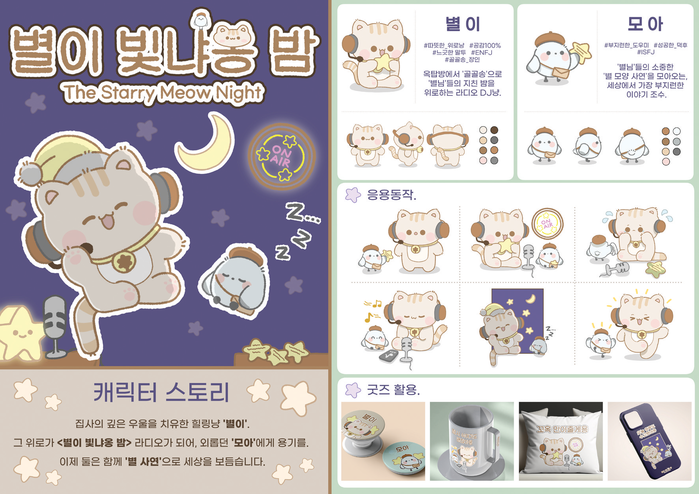 우울한 집사를 치유하는 라디오 DJ 고양이 별이, 그의 첫 애청자에서 든든한 매니저가 된 사연 배달부 새 모아의 이야기다. 방구석의 작은 라디오 방송 ‘별이 빛냐옹 밤‘을 통해 세상의 모든 외로운 사람에게 다정한 주파수를 맞추며 따뜻한 위로와 응원을 전한다.
