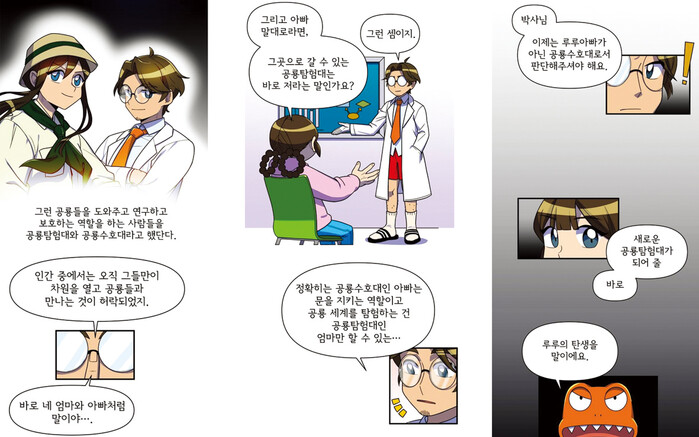 이제부터 이런 장치들이 각 장면마다 어떤 식으로 설치돼있는지 도깨비캡처와 루루의 다이노 어드벤처를 포함해 캐릭터가 등장하고 모험의 서사를 지닌 성장물이 출생·만남·시련·각성·극복·성장의 단계를 거치며 어떤 구성과 구조를 띠는지 하나하나 살펴보자.