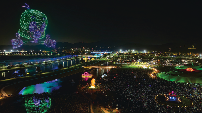 올해로 2회째를 맞은 올텐가의 가장 큰 특징은 도심 속 19만 8,347㎡ 면적의 광장에서 콘텐츠 전시, 체험, 공연을 모두 즐길 수 있다는 점이다. 특히 캐릭터 특화 드론 쇼는 전국 최대 규모이자 최장시간 퍼포먼스로 구성해 더욱 주목할 만하다. 시 마스코트인 루미·뚱이와 지역 기업의 IP는 물론 핑크퐁 아기상어, 스머프, 벨리곰 등 인기 캐릭터들이 드론 3,000대의 움직임에 따라 웅장하게 밤하늘을 수놓는다.