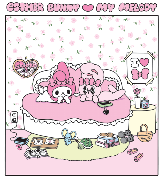 콜라보레이션 상품에 입힌 아트워크는 ‘에스더버니의 방(세계)에 놀러 온 마이멜로디’라는 테마를 반영해 원작자 에스더 킴이 직접 제작했다.