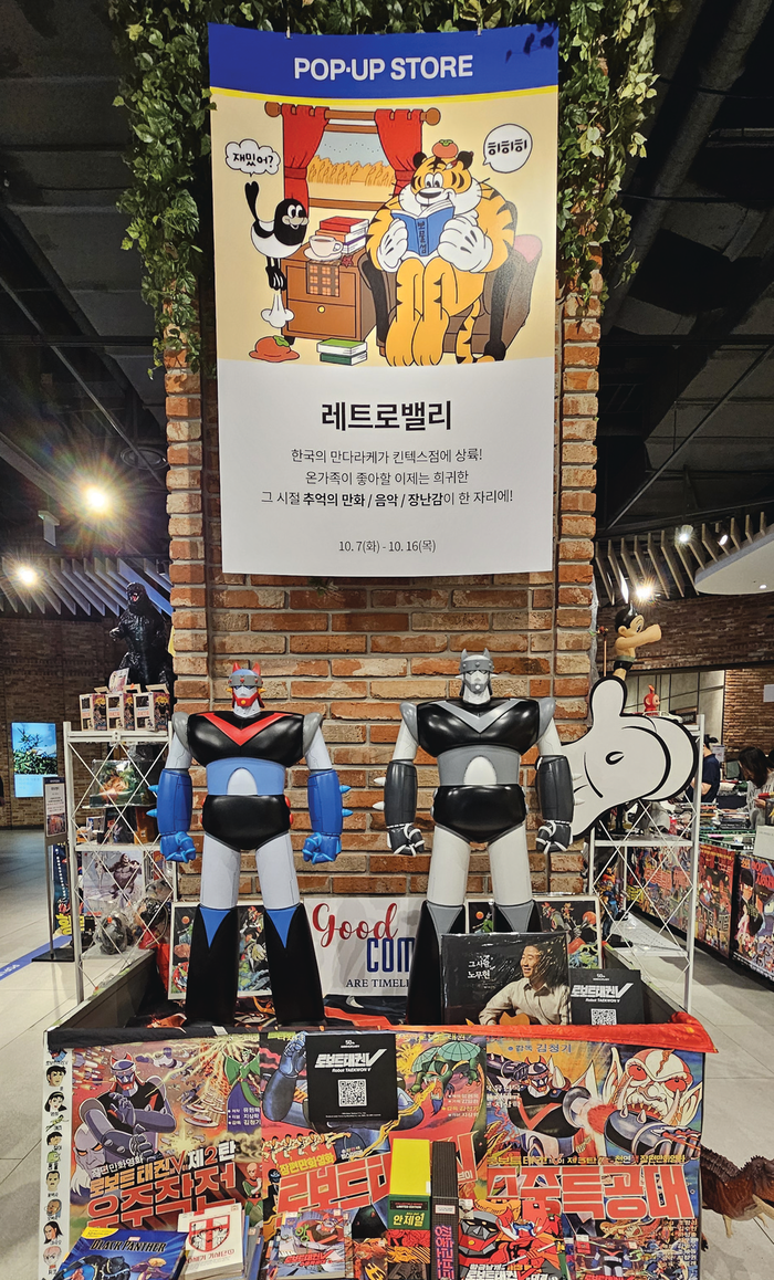 10월 7일부터 16일까지 지하 1층에서 열린 팝업은 지금은 찾기 힘든 옛날 만화책부터 희귀 영화 포스터, 세월의 흐름을 간직한 프라모델과 크고 작은 피규어 등 황호춘 대표가 직접 수집한 국내외 레트로 아이템 1,000여 점으로 가득 채워졌다.