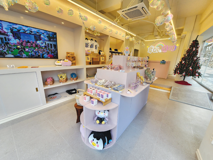 이곳은 볼펜, 여행 가방 등 루미·뚱이 캐릭터 디자인을 입힌 실용적인 굿즈 40여 종을 저렴한 가격에 판매한다.