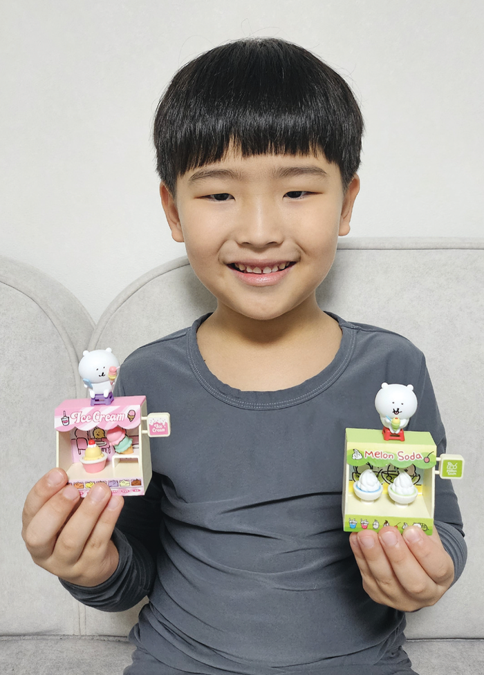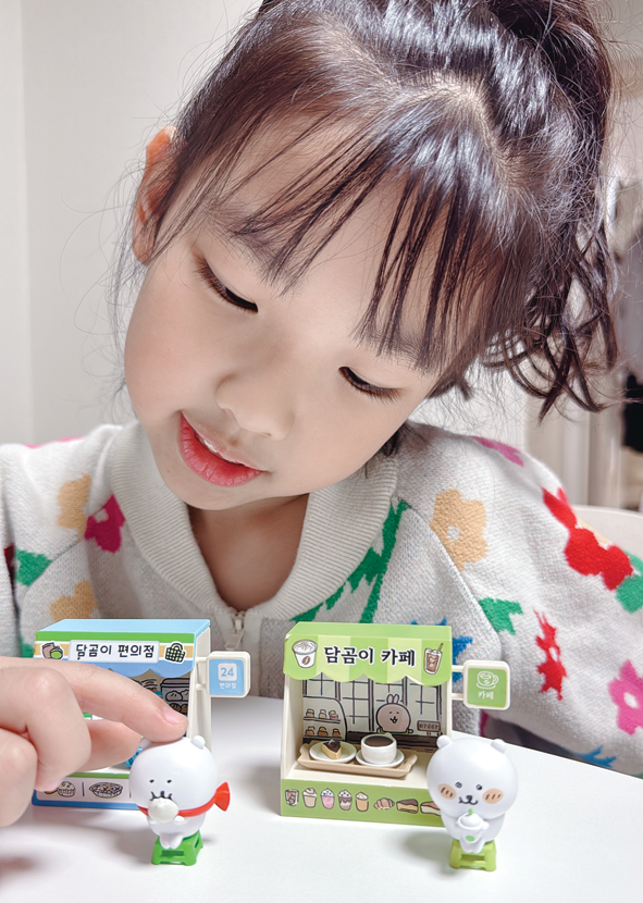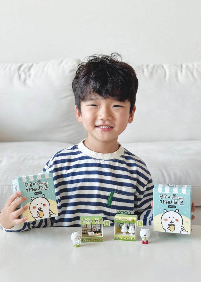 랜덤 박스를 열면 아이가 가게를 자유롭게 꾸밀 수 있어 좋아요. 귀여운 담곰이의 표정과 가게가 다양해 하나씩 다 모으고 싶어 해요.