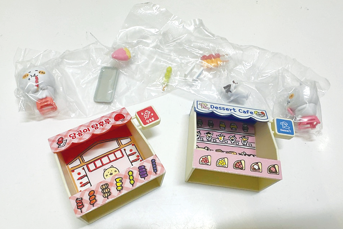 피규어 외에 카페, 아이스크림 가게, 편의점 등 가게 배경과 작은 소품이 들어 있어 더 귀여워요. 시리즈를 다 모아 장식해 놓으면 예쁠 것 같아요.
